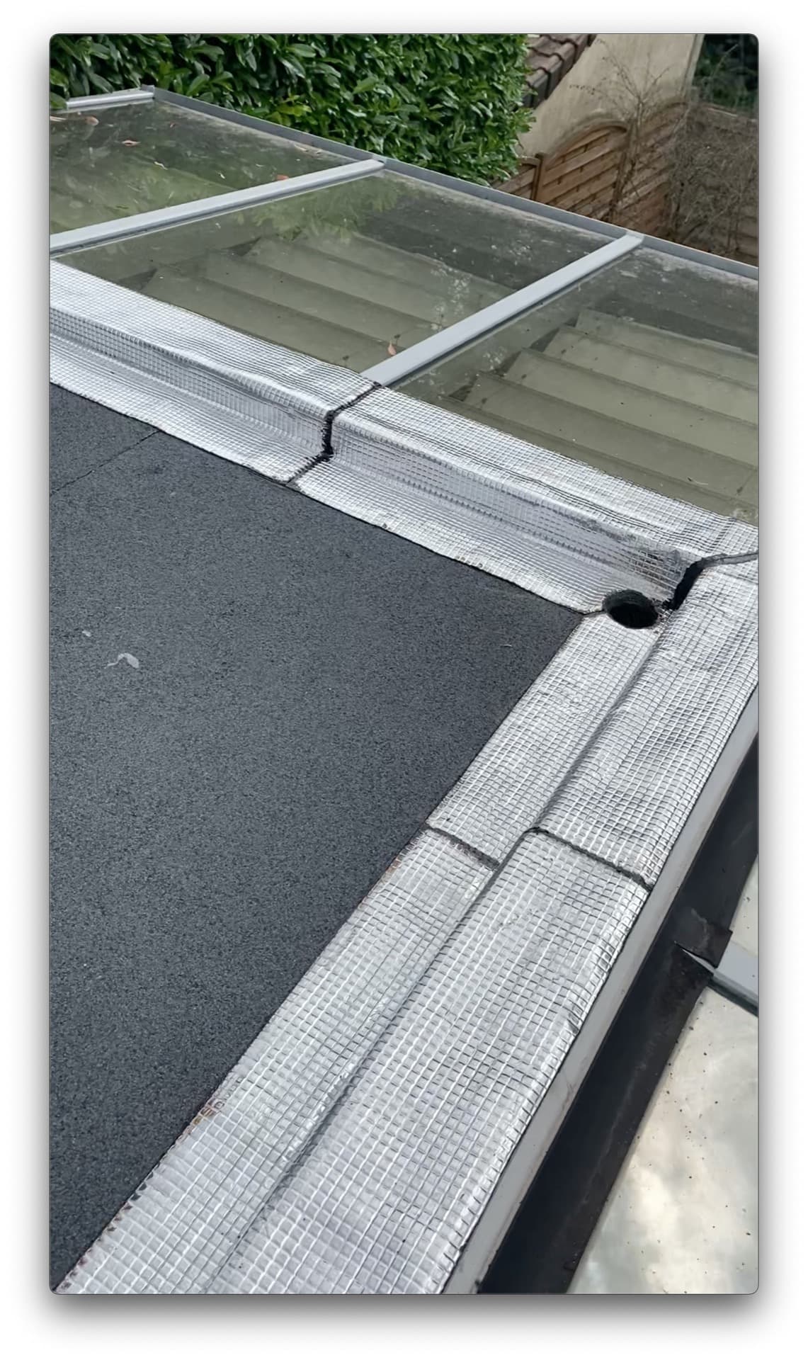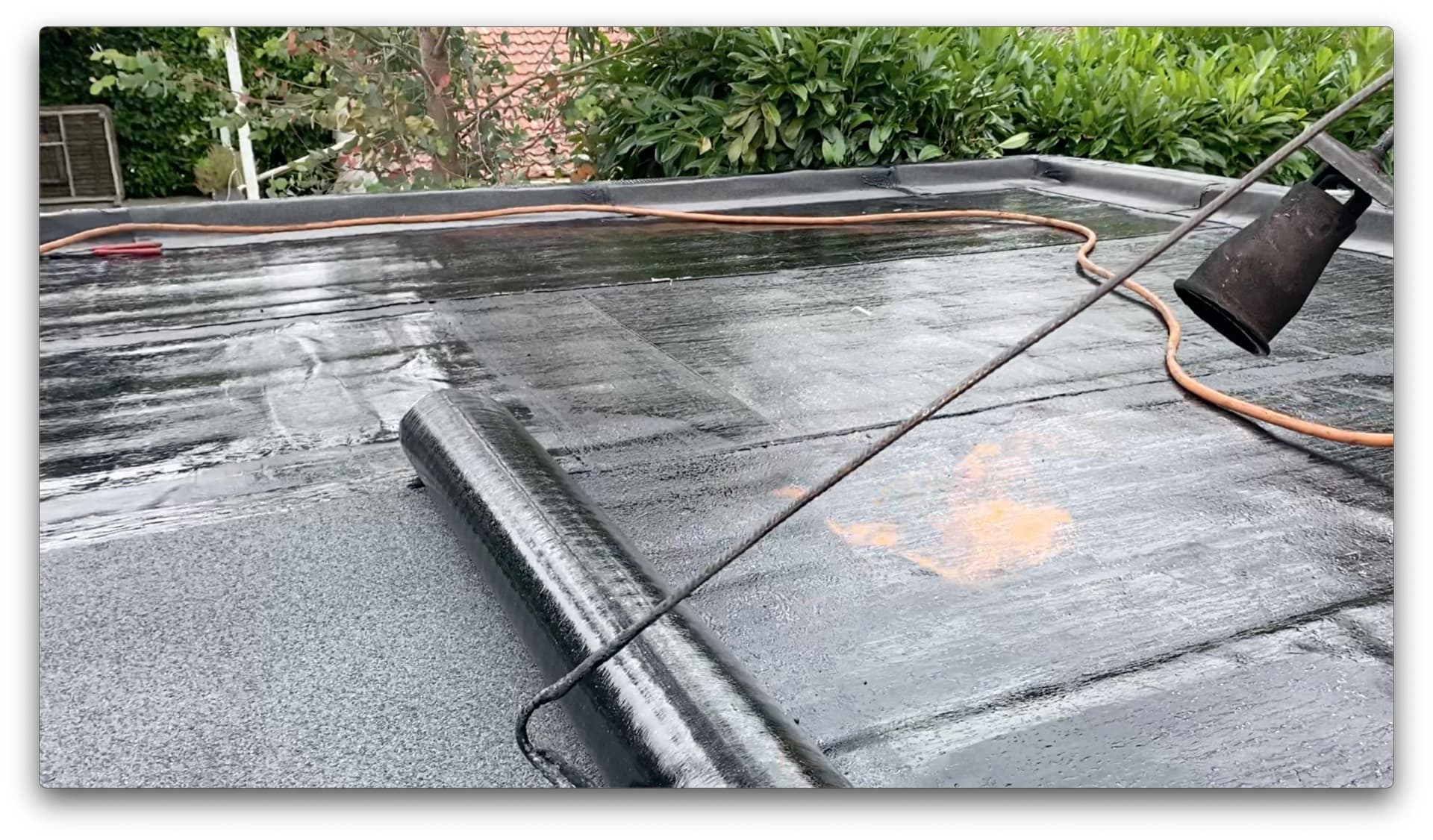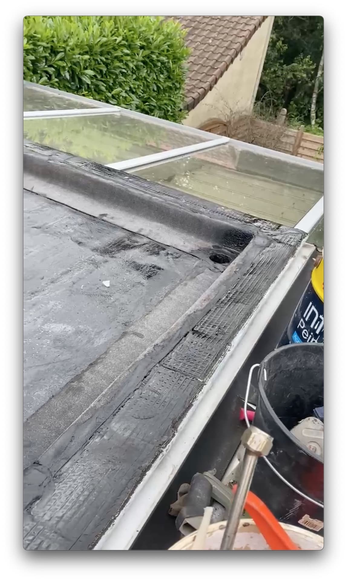 Nous sommes intervenus sur le toit de cette maison située au Chesnay-Rocquencourt (78150, Yvelines) afin de refaire de manière intégrale l'étanchéité en membrane bitumeuse de la toiture-terrasse.