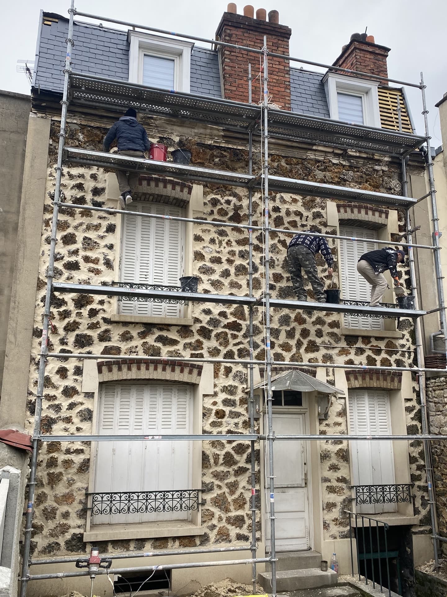 Nous sommes intervenus sur cette maison à Mantes-la-Jolie dans les Yvelines pour refaire à neuf la toiture en ardoises et opérer un ravalement complet de la façade en reprenant complètement les joints de meunière.